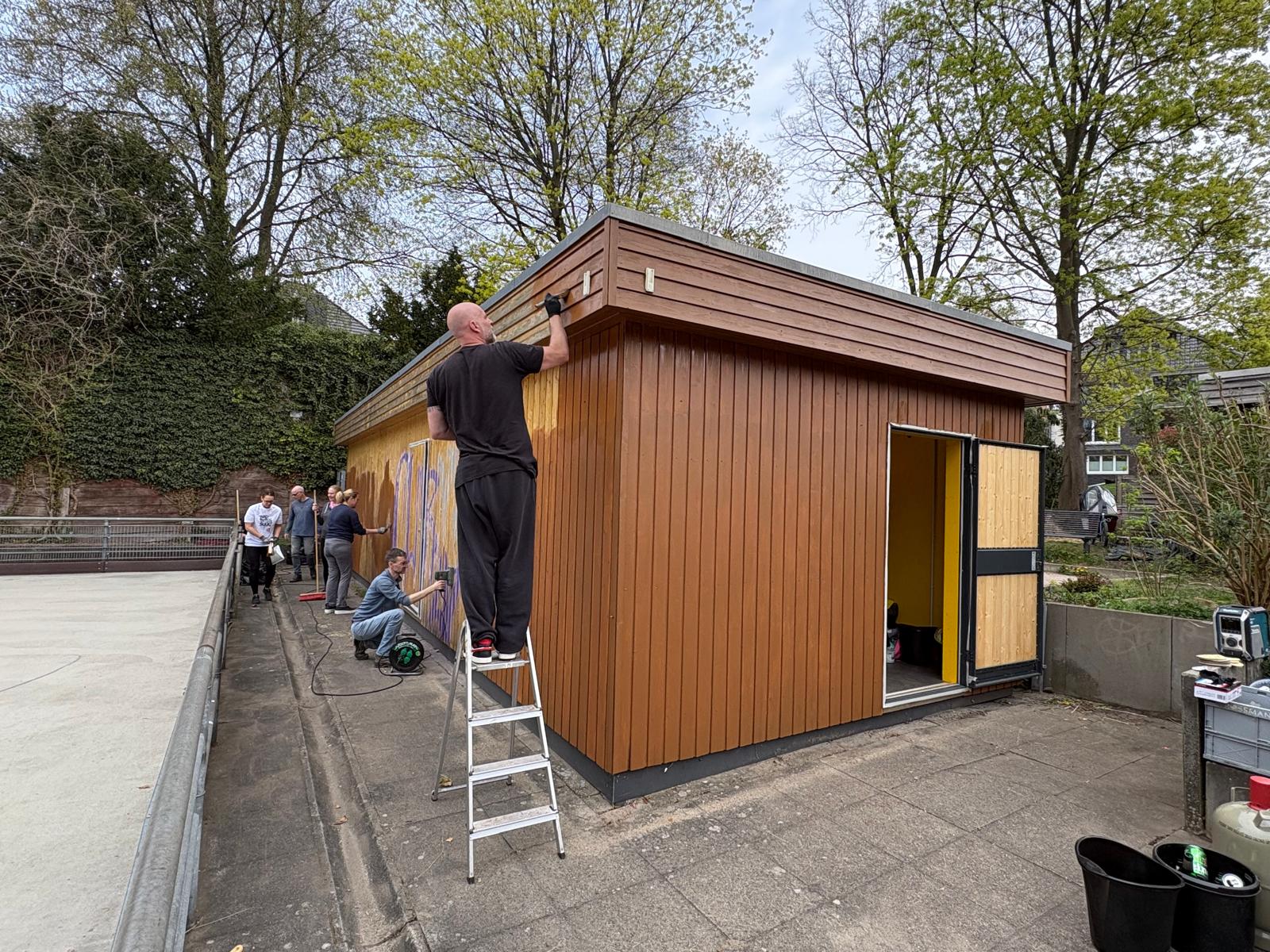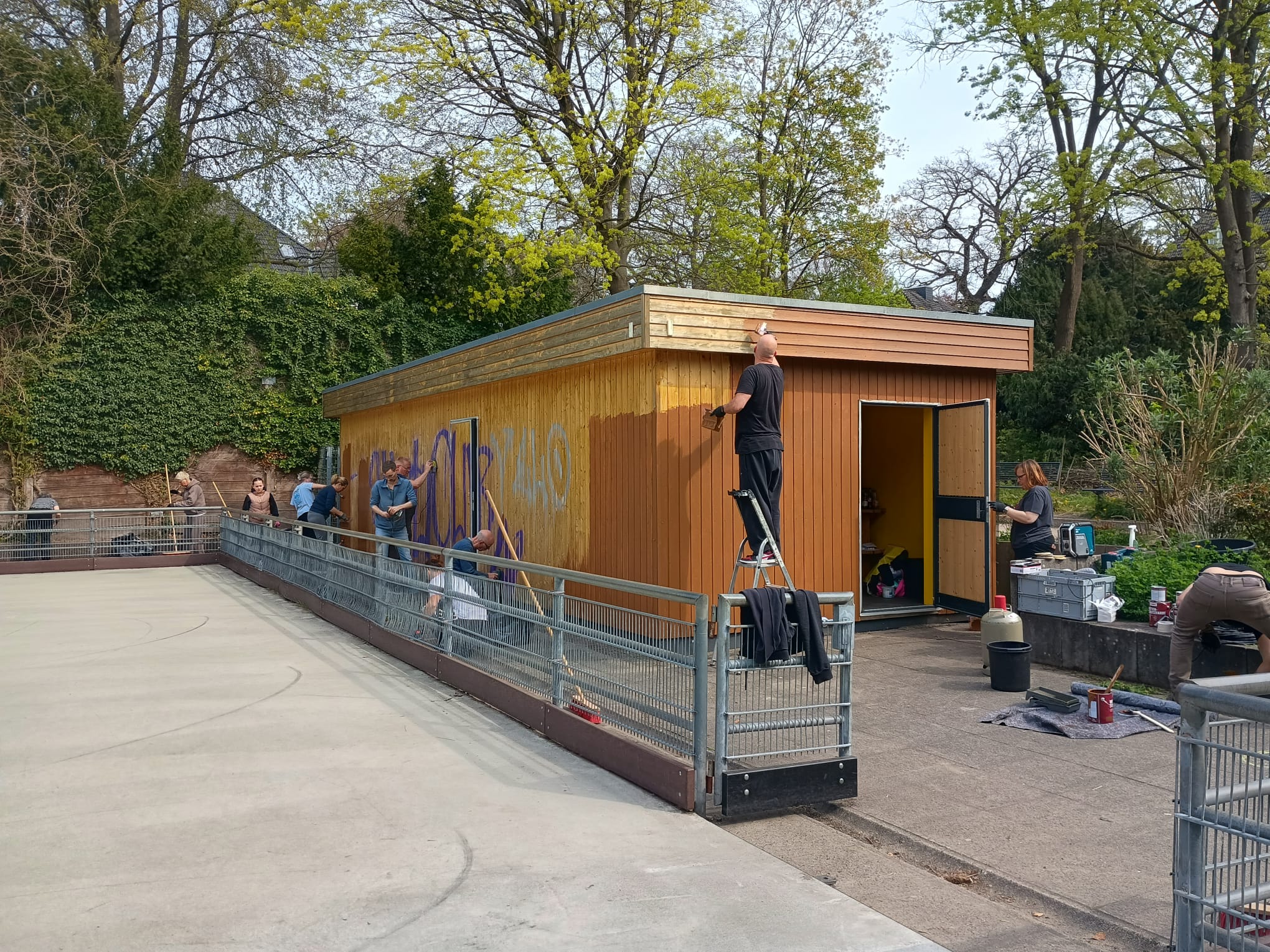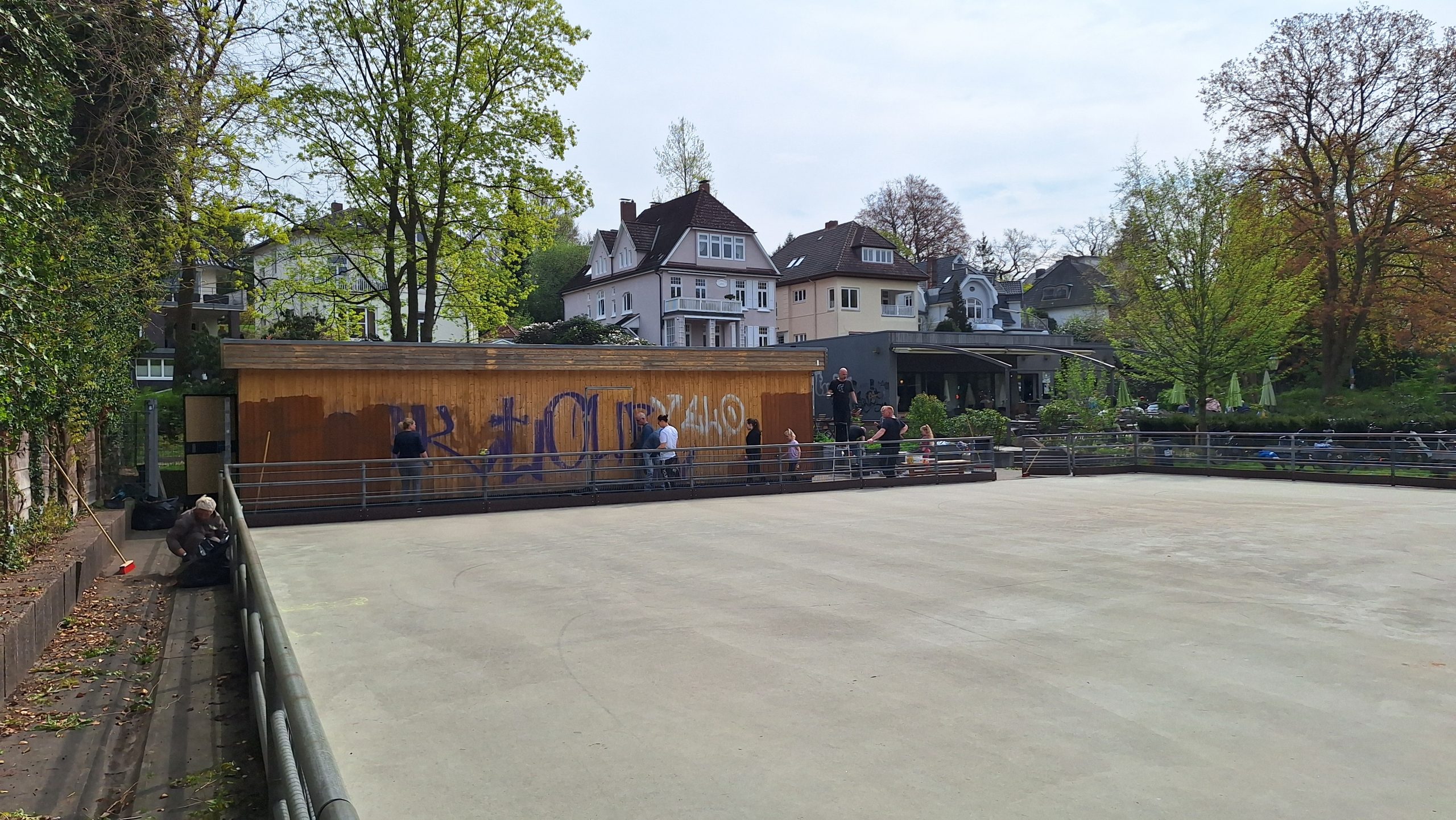Jedes Jahr aufs Neue muss die Außenbahn aus dem Winterschlaf erweckt werden. Unkraut, Müll und Schmierereien an der Hütte hatten heute Dank der vielen fleißigen Helfer keine Chance. Wir hoffen, dass es zum Schlossparkcup immer noch so aufgeräumt aussieht.